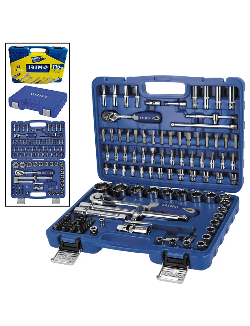El juego de herramientas está empaquetado en una caja de plástico duradera sujeta con hebillas de metal.
