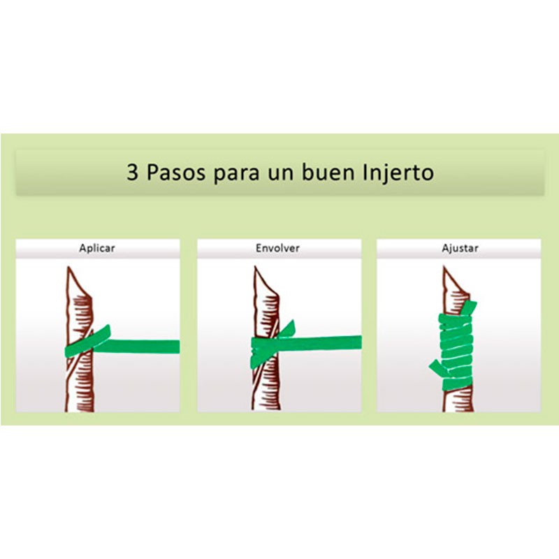 - Regula la presión que ejerce sobre el injerto, evitando lo que ocurre en las cintas de injertar no elásticas: tener que volver a ajustar la atadura.