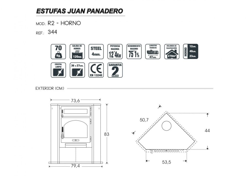 La estufa de leña de rincón modelo R2 cumple con la Norma EN 13240 y cuenta con tres años de garantía.