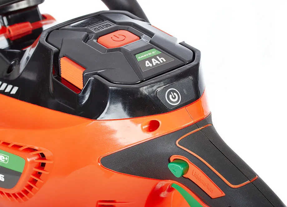 La motosierra a batería consigue ofrecer una gran comodidad de corte sin renunciar al rendimiento, pues es equivalente a una motosierra de gasolina de 45 cc. Con ella podrás cortar troncos con un corte limpio y sin tirones. Además, posee una espada de 16" y un peso de 3,2 kg.