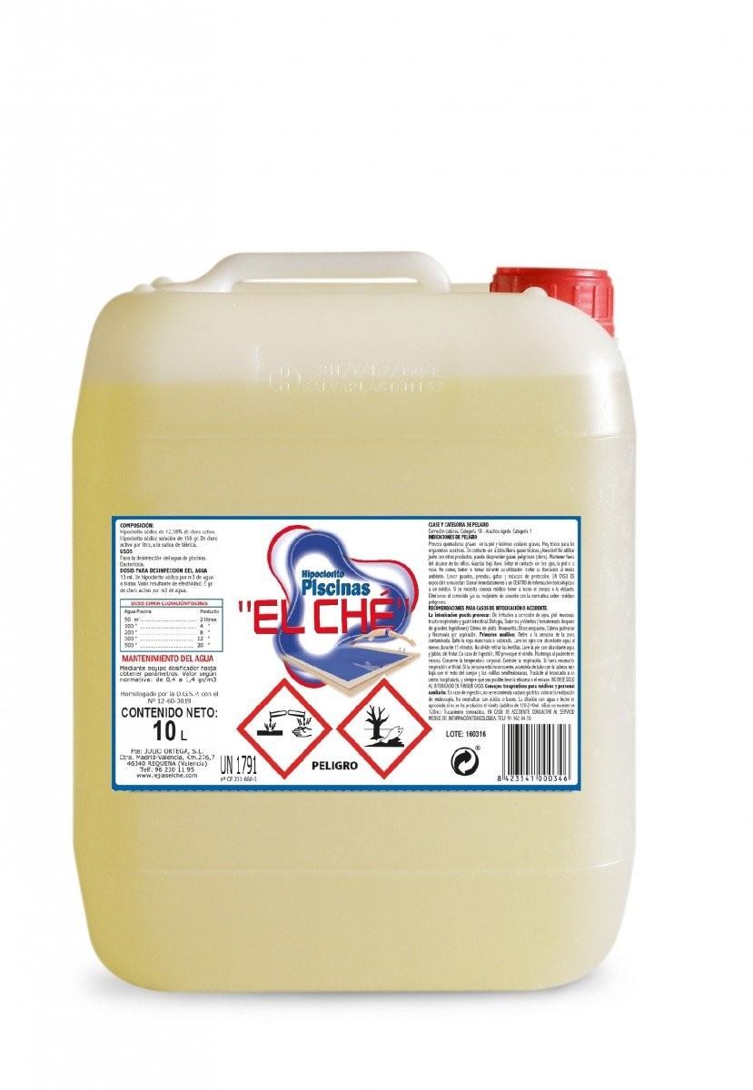Producto destinado a la desinfección del agua de piscinas y para elevar el PH del agua. 10 litros.