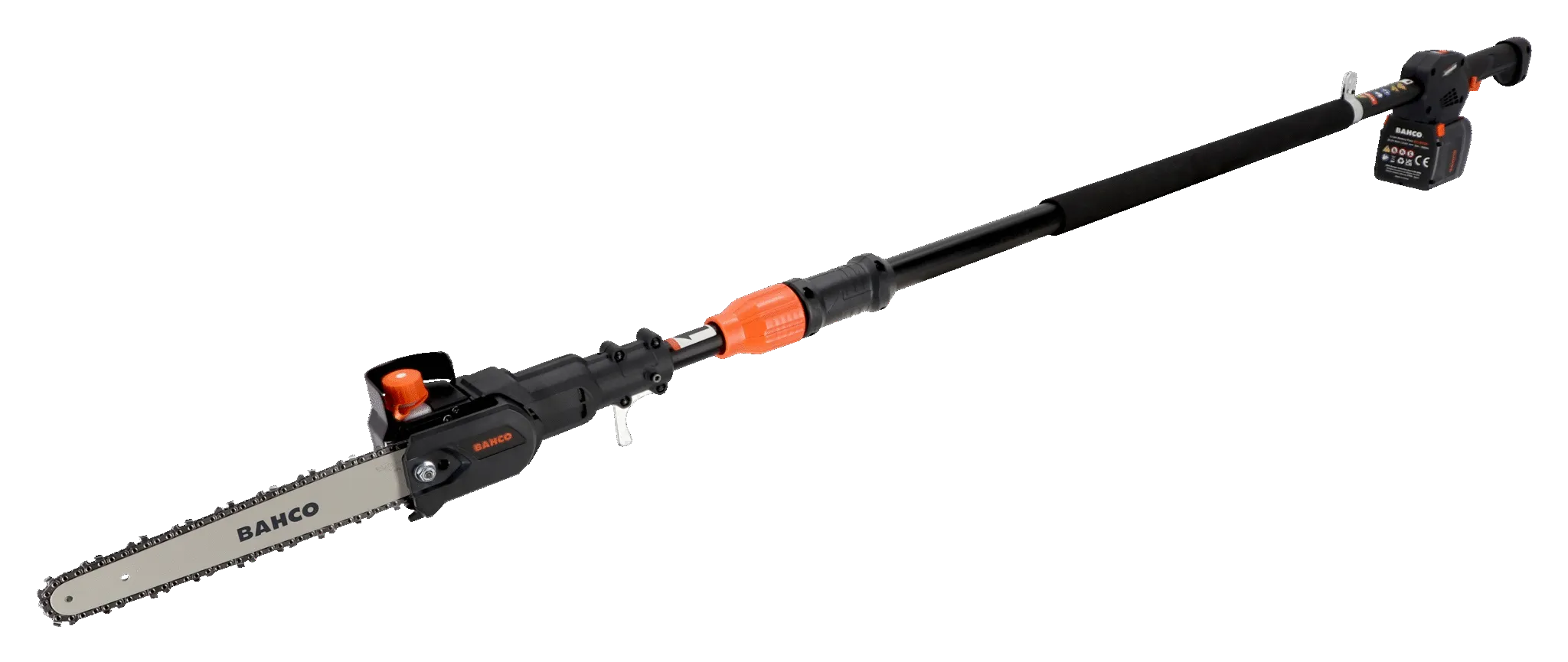 • Motosierra de pértiga telescópica 450 W (950 W máx.), motor sin escobillas, solución ideal para trabajos exigentes de poda en altura
