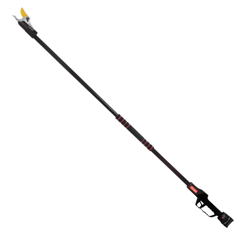 La ALTUNA AB2000 es una tijera de poda eléctrica con pértiga telescópica diseñada para trabajos profesionales en altura, que combina potencia, precisión y autonomía. Equipada con un motor brushless de 720W, esta herramienta garantiza un corte fluido y eficiente incluso en ramas gruesas, con una capacidad de corte de hasta 50 mm.