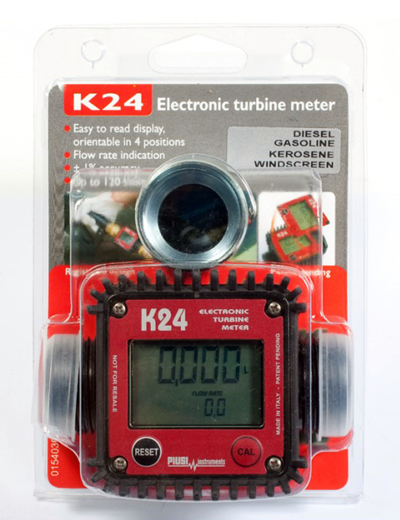 - Es un cuentalitros digital para fluidos de baja viscosidad: gasóleo, queroseno, agua... con sistema de medida de turbina.
